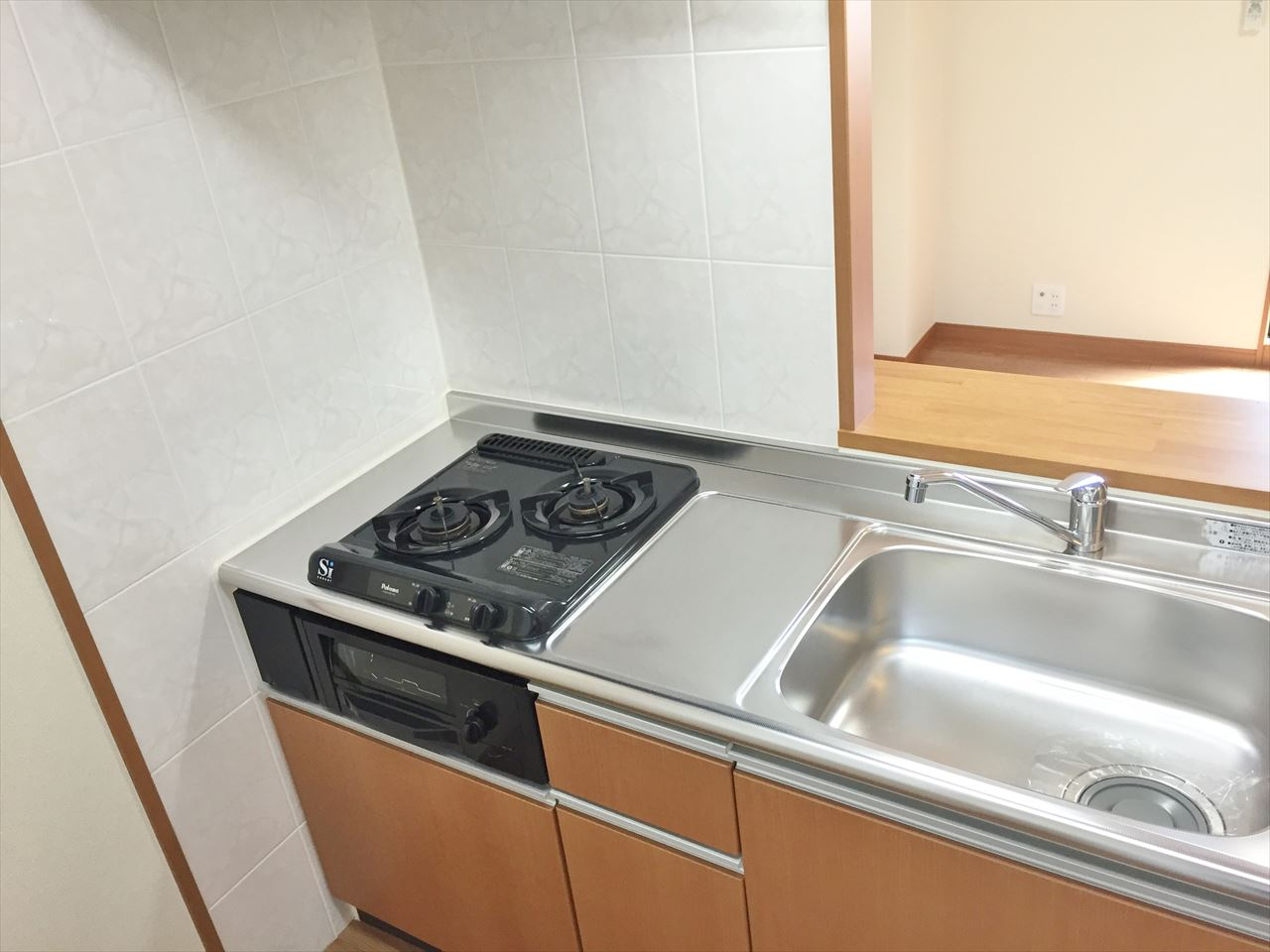 バス・トイレ別、バルコニー、都市ガス、洋室、システムキッチン、ガスキッチン、対面キッチン、室内洗濯機置場、シャンプードレッサー、浴室乾燥、温水洗浄暖房便座、エアコン、収納、モニター付インターホン、オートロック、駐車場、インターホン、独立洗面所、2階以上、最上階 |